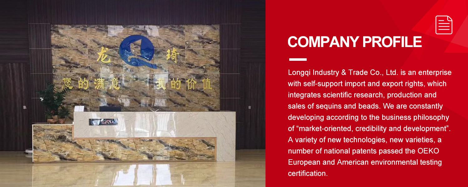 Longqi Industry & Trade Co., Ltd. is an enterprise with self-support import and export rights,which integrates scientific research, production and sales of sequins and beads.